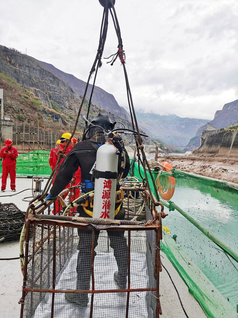 云南溪洛渡水电站—水下碎石清理 工程,现场水深13米,  工作人员均为拥有十几年工作经验的潜水员个个都是兢兢业业专心致志的认真工作
